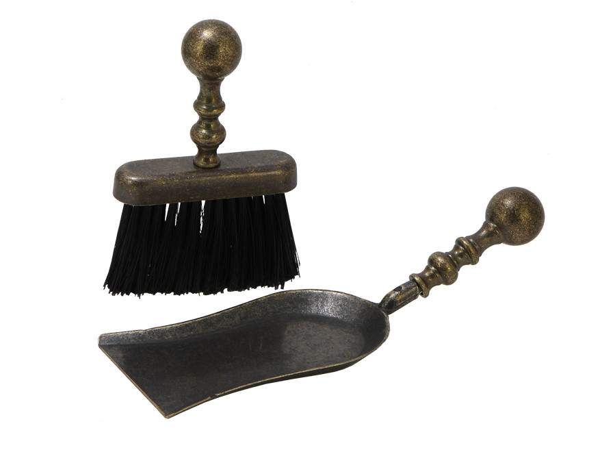 Набор для камина: совок большой + щетка плоская, антик