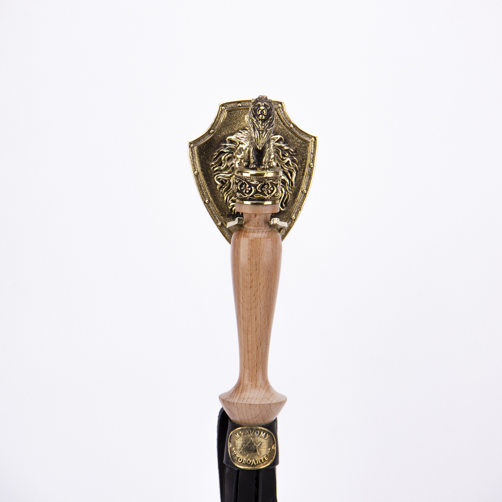 На ручке размещена латунная объемная накладка "Мудрому руководителю".